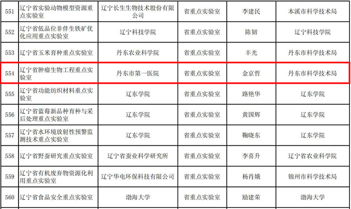 近日,辽宁省科技厅发布了《关于发布2023年省级科技创新平台名录的通知》,其中包括省重点实验室、省专业技术创新中心、省产业共性技术创新中心、省产业技术创新研究院和省临床医学研究中心等5类省级科技创新平台。我院2021年被批准组建的,由金京哲副院长负责的省内地级市唯一的“辽宁省肿瘤生物工程重点实验室”获批“省重点实验室”。