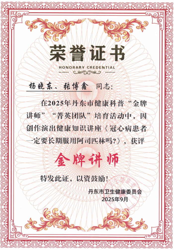 【获奖作品展播】2025年丹东市健康科普“金牌讲师”评比(第一名):《冠心病患者一定要长期服用阿司匹林吗?》