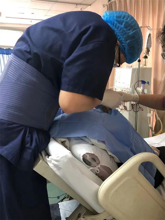 慢性肾脏疾病已成为全球范围内威胁人类健康的重要疾病,每年有超过百万人死于与慢性肾脏病相关联的心脑血管疾病。姜楠副主任深切了解这一现实,他在肾内科门诊和病房工作中,忙碌地兼顾着病房住院患者、门诊正常诊疗患者以及门诊腹膜透析患者的管理。他坚持为每一位患者耐心讲解,细心诊疗,凭借其专业和关怀赢得了广大患者及其家属的尊敬和信赖。长期的手术操作使他意识到腰关节的稳定,对治疗成败和患者安全至关重要,因此每次操作他都会佩戴腰带,于细微处体现着他对患者安全的高度重视。