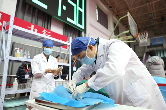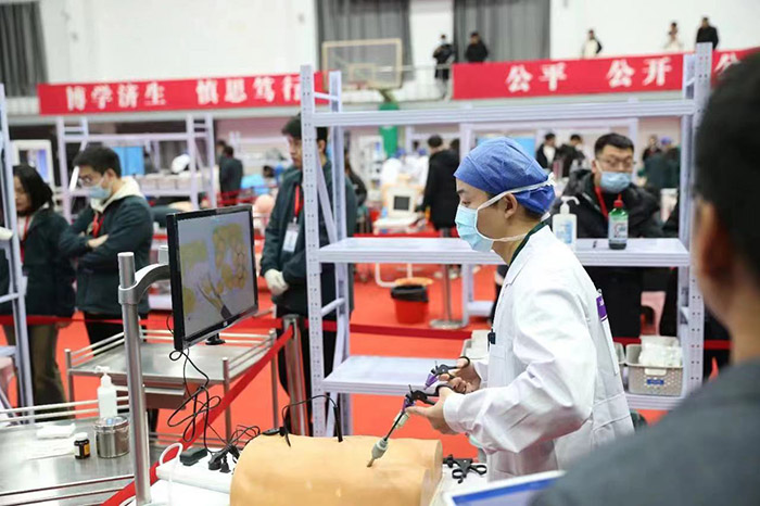 本次竞赛分为临床技能竞赛和理论知识竞赛两个部分,重点考察临床医学专业学位硕士研究生的临床基础理论、基本技能、人文关怀精神、创新能力、临床思维、实践能力、团队合作意识、应急处理能力和医患沟通技巧等岗位胜任技能来自省内外14家研究生培养单位,近百名师生选手参加竞赛。