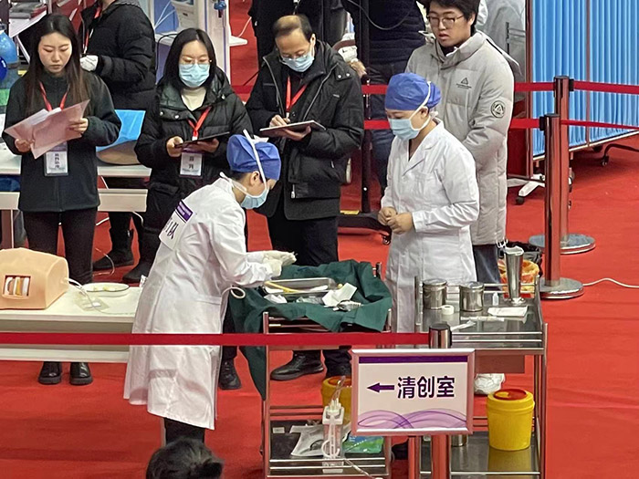 本次比赛参赛选手由大赛举办方随机抽取组成。接到通知后,我院技能培训中心主任苗津鸣针对学员特点,精心打造一套培训方案,让选手们在比赛中都能充分发挥特长。选手在模拟实践中既锻炼了临床应变能力解决问题的能力,同时也增强了团队协作能力,展现了我院住培学员扎实的理论基础、过硬的操作技能和临床胜任力。
