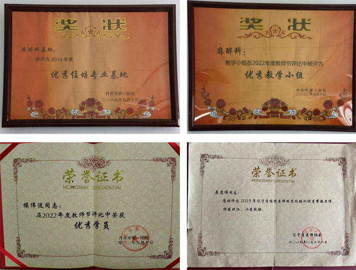 麻醉科专业基地以临床麻醉为基本培训结构,制定了全面的理论和实践培训计划,借助学科有力的师资力量和丰富的临床资源,建立了一整套完善的住培医师培训体系。期间共培养了并硕士研究生6名,住培学员20余名,均取得优异的毕业成绩。基地多次获得优秀教学基地称号,多名学员获得优秀学员称号。