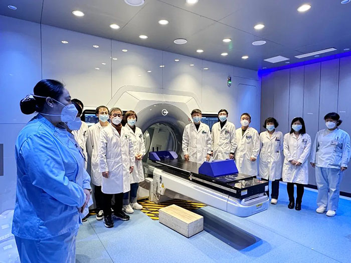 肿瘤放疗科是丹东市肿瘤医院最重要的组成部分,能开展肿瘤化疗、放疗、靶向治疗、免疫治疗、深部热疗、中医中药、肿瘤康复、营养干预等综合治疗。在丹东地区率先开展了影像引导下三维适形放射治疗技术、影像引导下动态旋转调强放射治疗技术(IMRT)、立体定向放射治疗技术(X-刀、SBRT)、容积旋转调强放射治疗(VMAT)技术、头体伽玛刀治疗技术、妇科肿瘤三维后装放射治疗技术、深部热疗技术、生物细胞免疫治疗技术、基因检测等最新肿瘤治疗及检测技术,是丹东地区靶向治疗及生物免疫治疗的临床培训基地,填补丹东地区多项空白。为进一步发展学科优势,突破传统放疗技术,丹东市第一医院最新引进高端放疗设备螺旋断层放射治疗系统(TOMO刀),并于2024年起正式投入临床应用,将丹东市肿瘤精准放射治疗推上新的台阶。