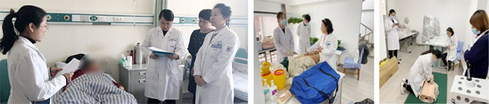 内科基地设有多个微信群,可实时布置教学任务。所有轮转科室定期开展教学活动(包括教学查房,病例讨论,小讲课等),提高学员的理论及临床水平。并对所有新入院的学员进行基础知识、基本技能的培训、考核,以提高专业知识技能。对即将毕业的学员会定期安排结业能力考核培训,安排师资进行答疑和指导,确保结业考核的通过率。