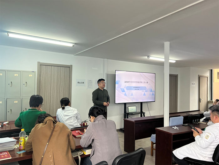 随后,技能培训中心苗主任对年度考核的具体要求进行了详细说明。他详细介绍了考核的流程、标准、评分细则以及注意事项等,并强调了考核过程中的安全和纪律要求。苗主任表示,技能培训中心将全力配合住培办做好年度考核工作,确保考核工作的顺利进行。