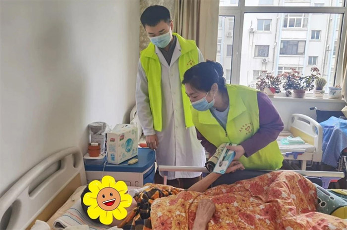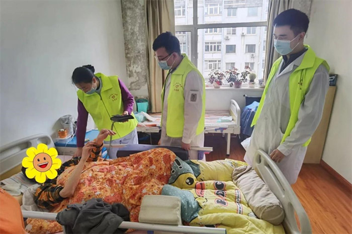 抵达养老院后,学员们迅速分组,跟随临床医生为老人们进行健康检查,包括测量血压、血糖等常规项目,对每位老人的身体状况都进行了详细记录。