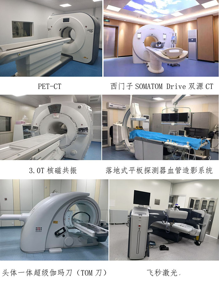 医院拥有PET/CT,3.0T核磁共振机、西门子SOMATOM Drive双源CT、头体一体超级伽马刀、全数字血管造影机、直线加速器、热疗机、飞秒激光、3D腹腔镜治疗系统、4K超高清手术系统、碎石航母,EBUS、等大型医疗设备200余台(套)。其中PET/CT为我市首台引进,3.0T核磁共振机、西门子SOMATOM Drive双源CT、头体一体超级伽马刀、碎石航母,EBUS等多项设备填补地区空白。其中TaiChiB”多模式一体化数码放射系统“是丹东市唯一的国家十三五重点项目,开创了地市级医院参与国家级大型设备临床试验的先河。