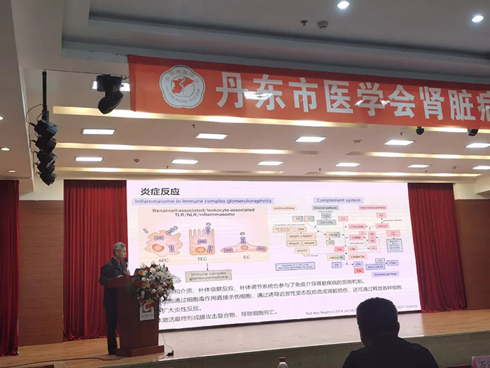 丹东市医学会会长姜洪涛为大会致词。他向丹东市第一医院举办第十届肾脏病学术年会表示祝贺,并对广大奋战在临床一线的肾内科医护人员表示感谢和慰问。姜洪涛会长对肾脏病学分会的工作表示了肯定和赞扬,对分会今后的工作提出了要求和期望。本次会议的学术交流内容分为四个专题,分别是:药物性牙龈增生、生物制剂在免疫介导性肾脏病的使用、腹膜透析的管理--容量篇、CKD-MBD高磷血症治疗的发展历程。
