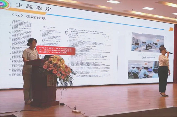 全国医院品管圈大赛获奖圈组,来自丹东市第一医院耳鼻喉肾内科虹愿圈、放疗一病区安馨圈为现场代表进行了精彩分享。